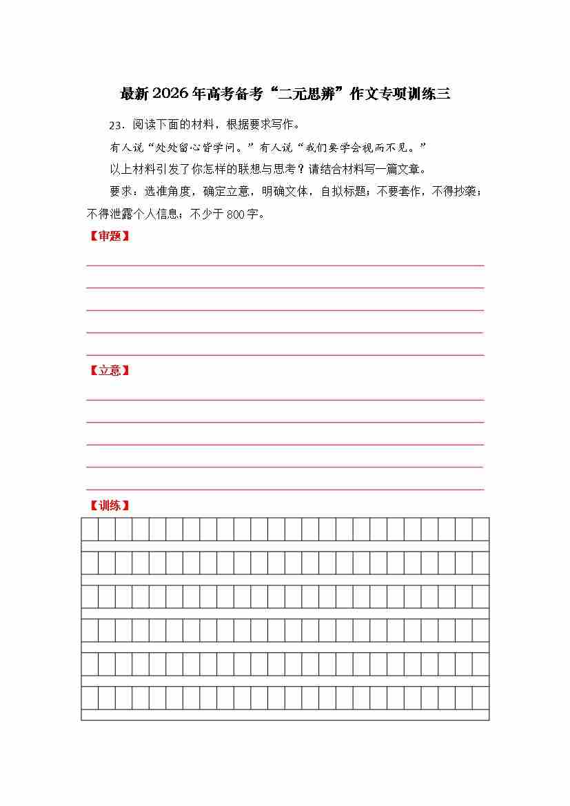 首页 > 全部 > 重难点备考 > 高考备考“二元思辨”作文专项训练三(学生版)