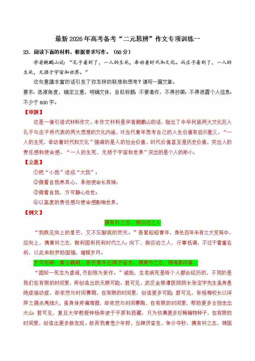 首页 > 全部 > 重难点备考 > 高考备考“二元思辨”作文专项训练一(教师版)