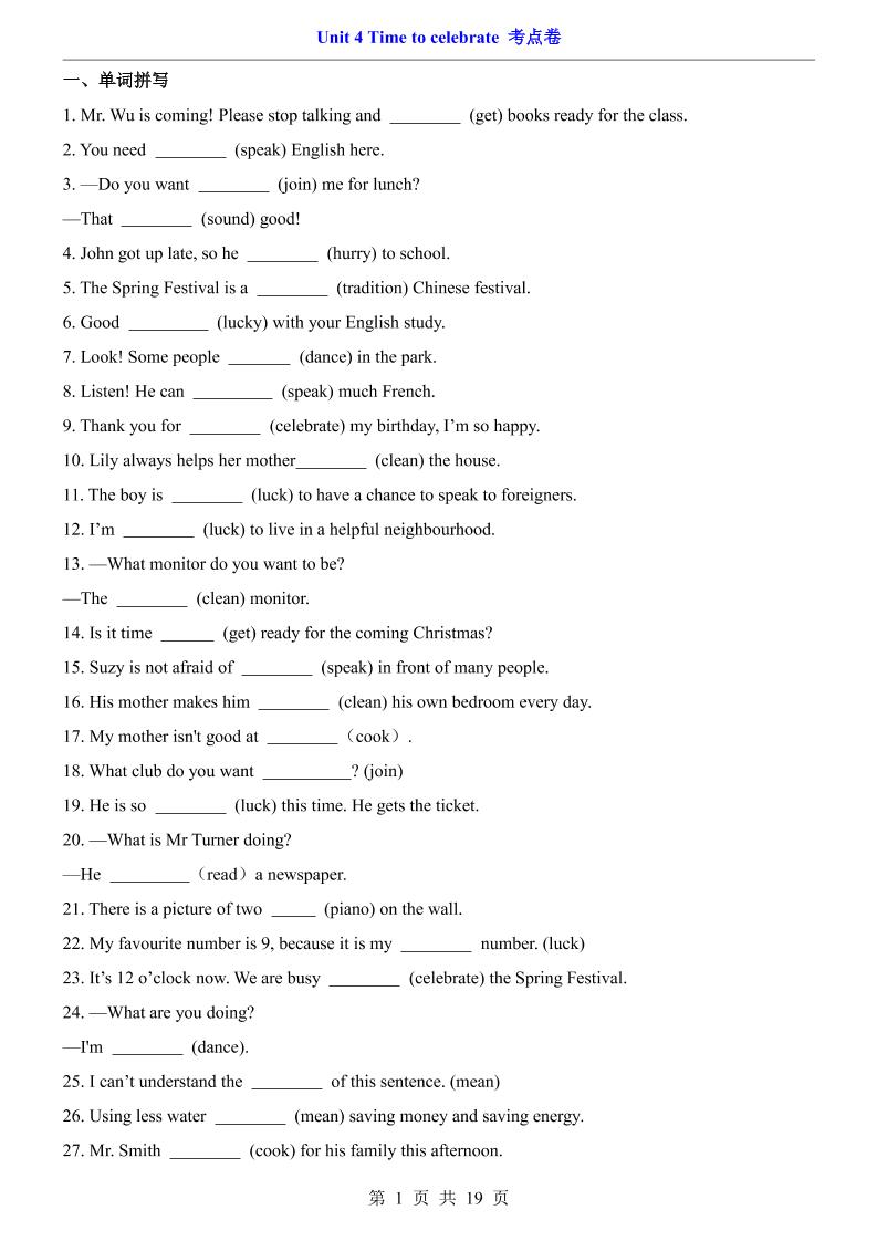 首页 > 全部 > 单元测试 > Unit 4 Time to celebrate【单元卷·考点卷】含答案