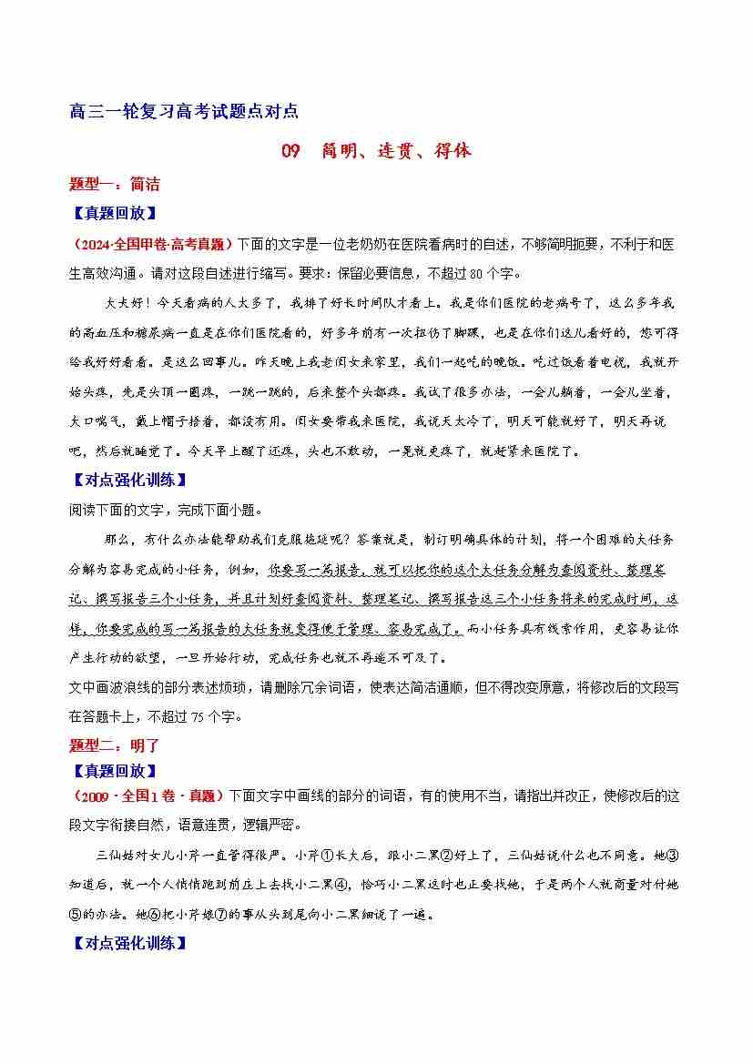首页 > 全部 > 专项训练 > 09 简明、连贯、得体—(学生版)