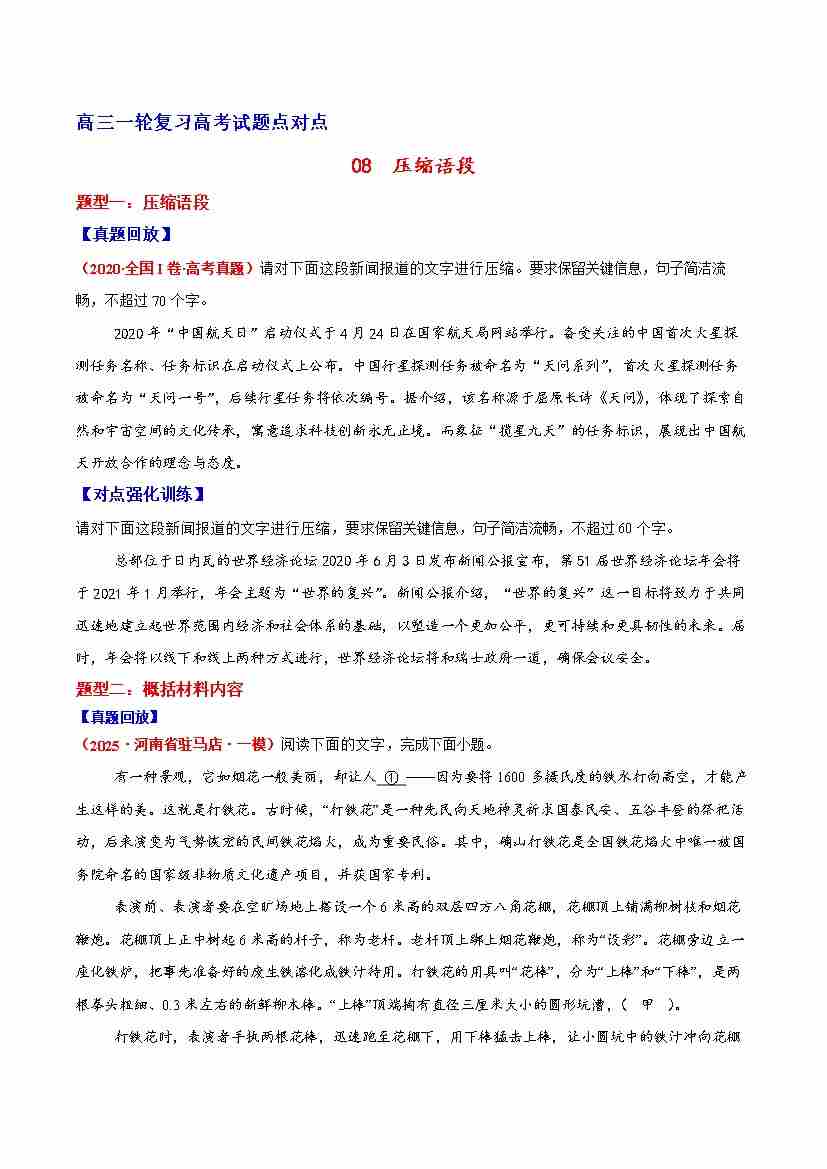 首页 > 全部 > 专项训练 > 08 压缩语段—(学生版)