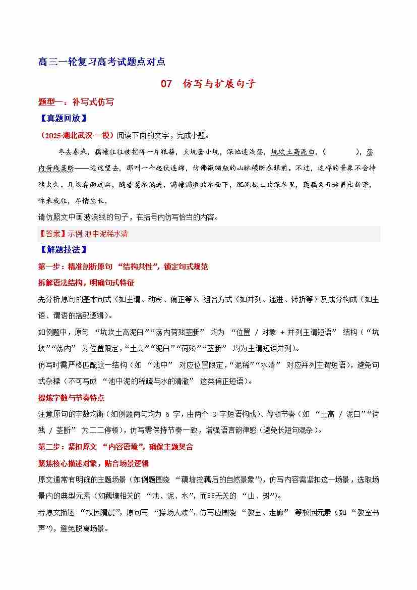 首页 > 全部 > 专项训练 > 07 仿写与扩展句子—(教师版)