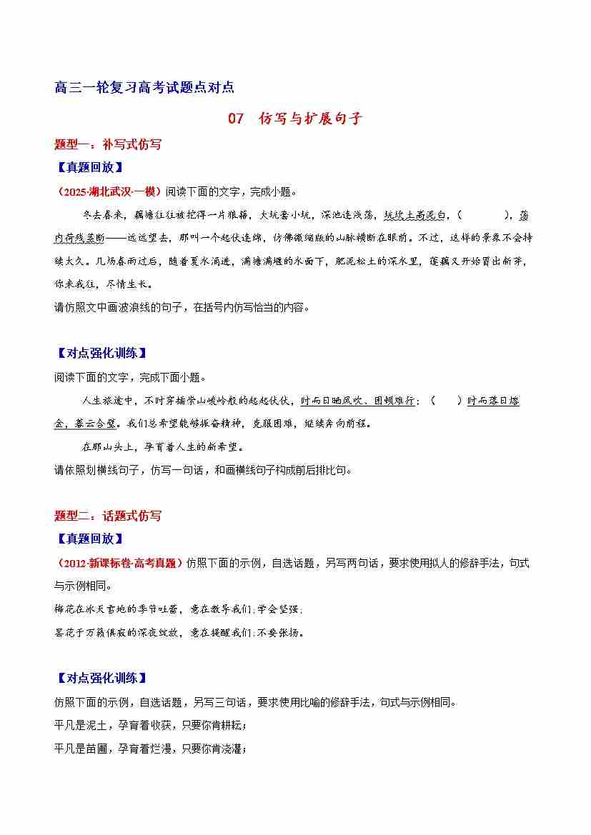 首页 > 全部 > 专项训练 > 07 仿写与扩展句子—(学生版)