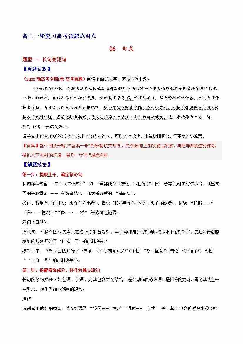 首页 > 全部 > 专项训练 > 06 句式—(教师版)