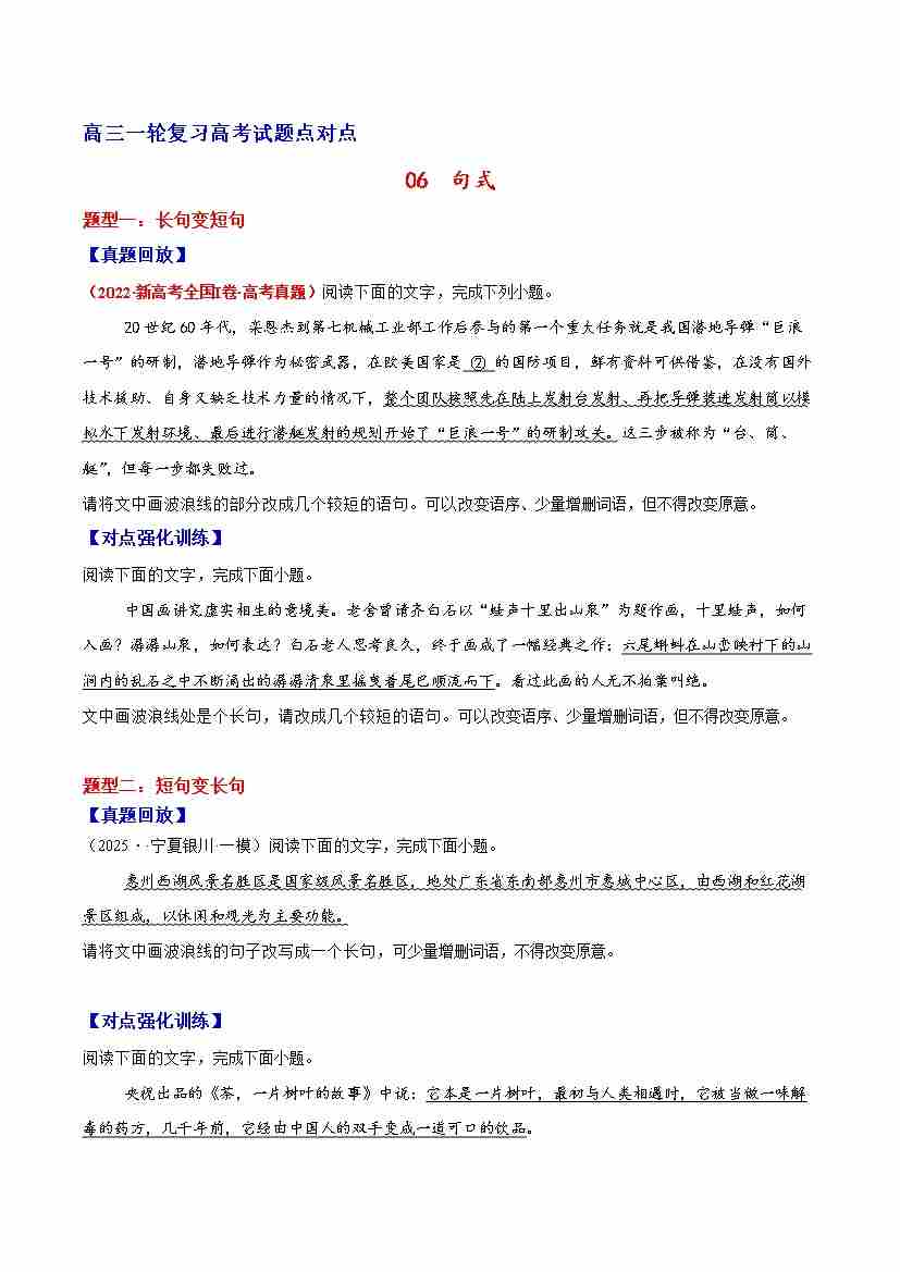 首页 > 全部 > 专项训练 > 06 句式—(学生版)