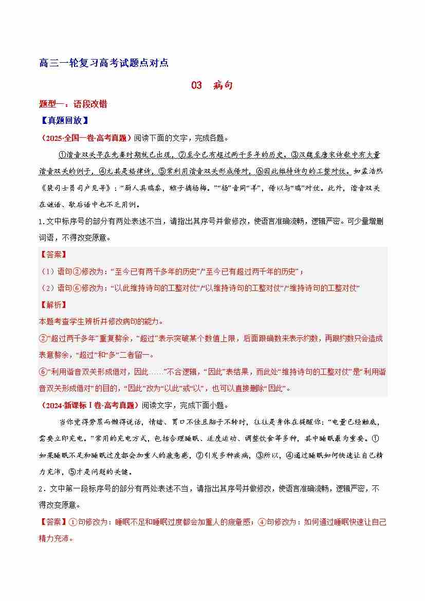 首页 > 全部 > 专项训练 > 03 病句—(教师版)
