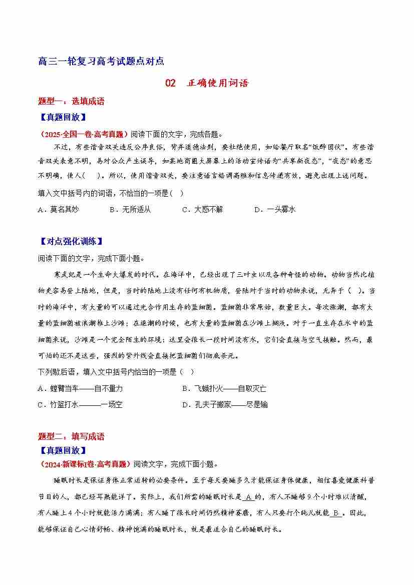 首页 > 全部 > 专项训练 > 02 词语—(学生版)