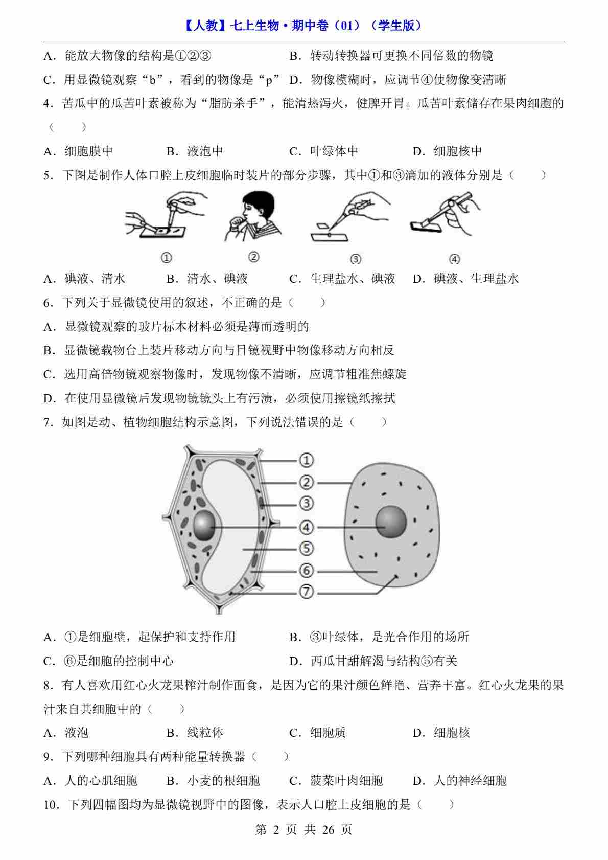 首页 > 全部 > 期中试卷 > 【人教】7上生物期中卷01【第1单元】