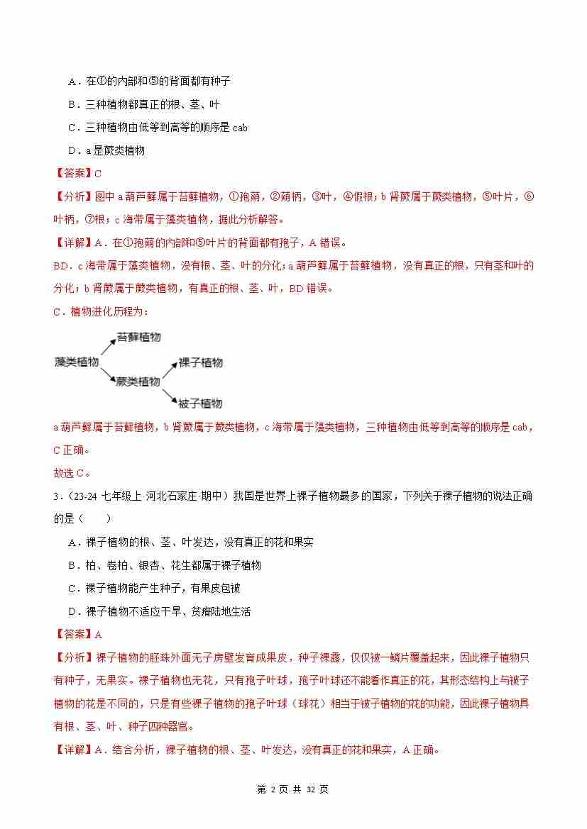 首页 > 全部 > 期中专项 > 专题04 藻类与植物的类群(解析版)
