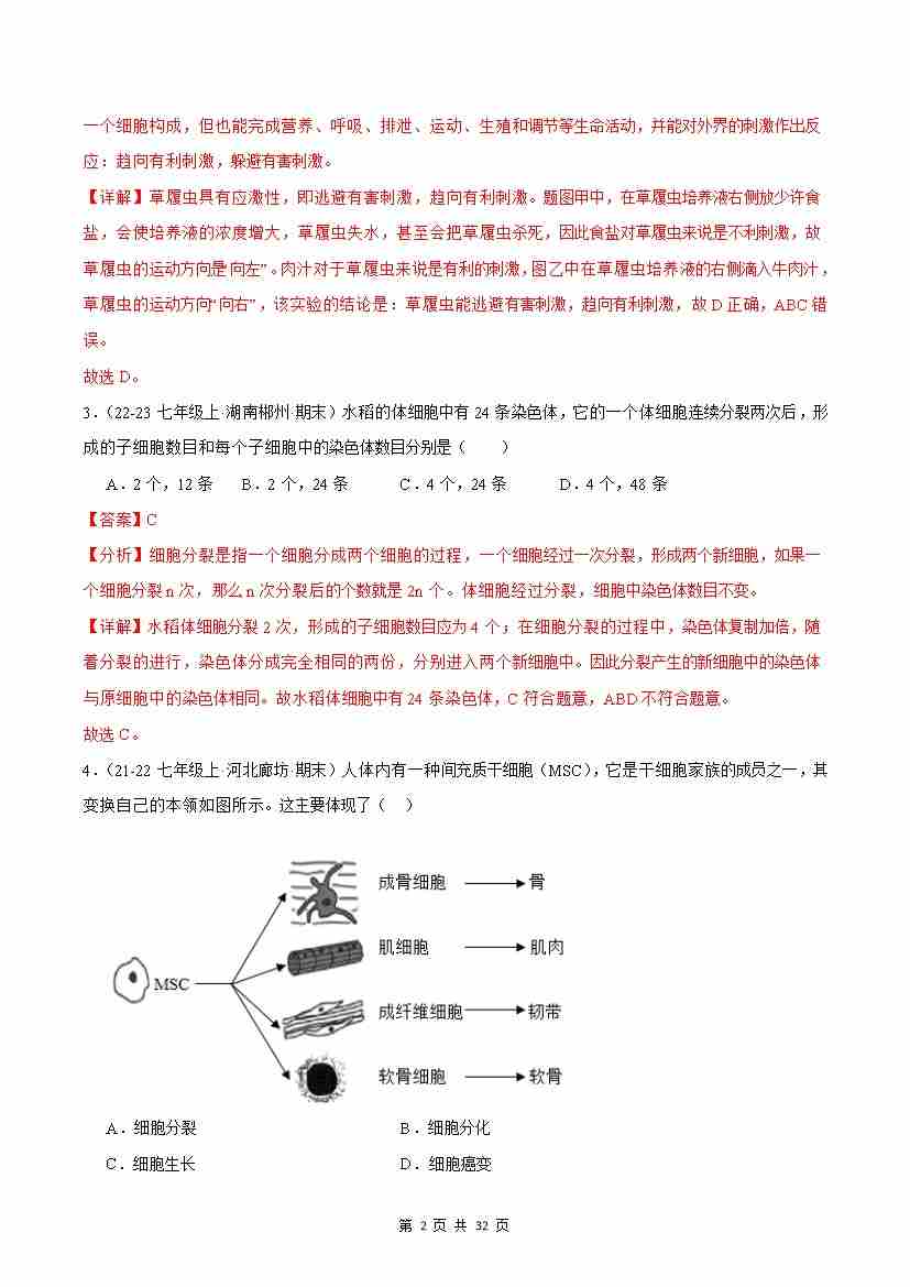 首页 > 全部 > 期中专项 > 专题03 从细胞到生物体(解析版)