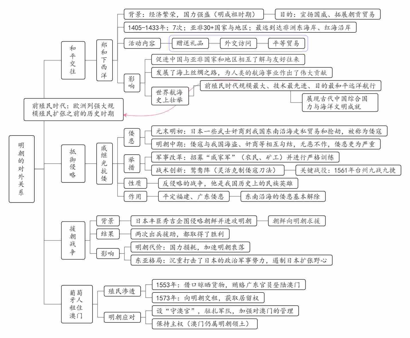 第16课 明朝的对外关系(思维导图pdf版)-【每课一图】初中历史思维导图(七年级·统编版2024)