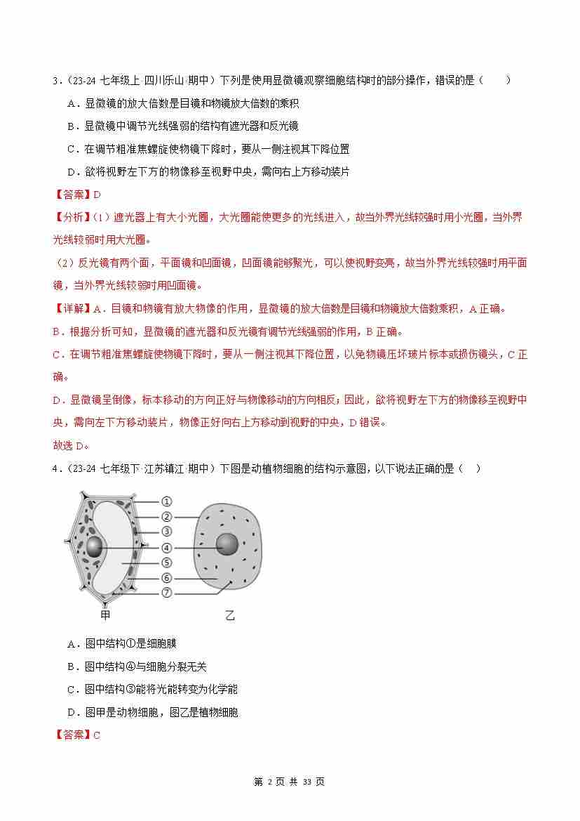 首页 > 全部 > 期中专项 > 专题02 认识细胞(解析版)