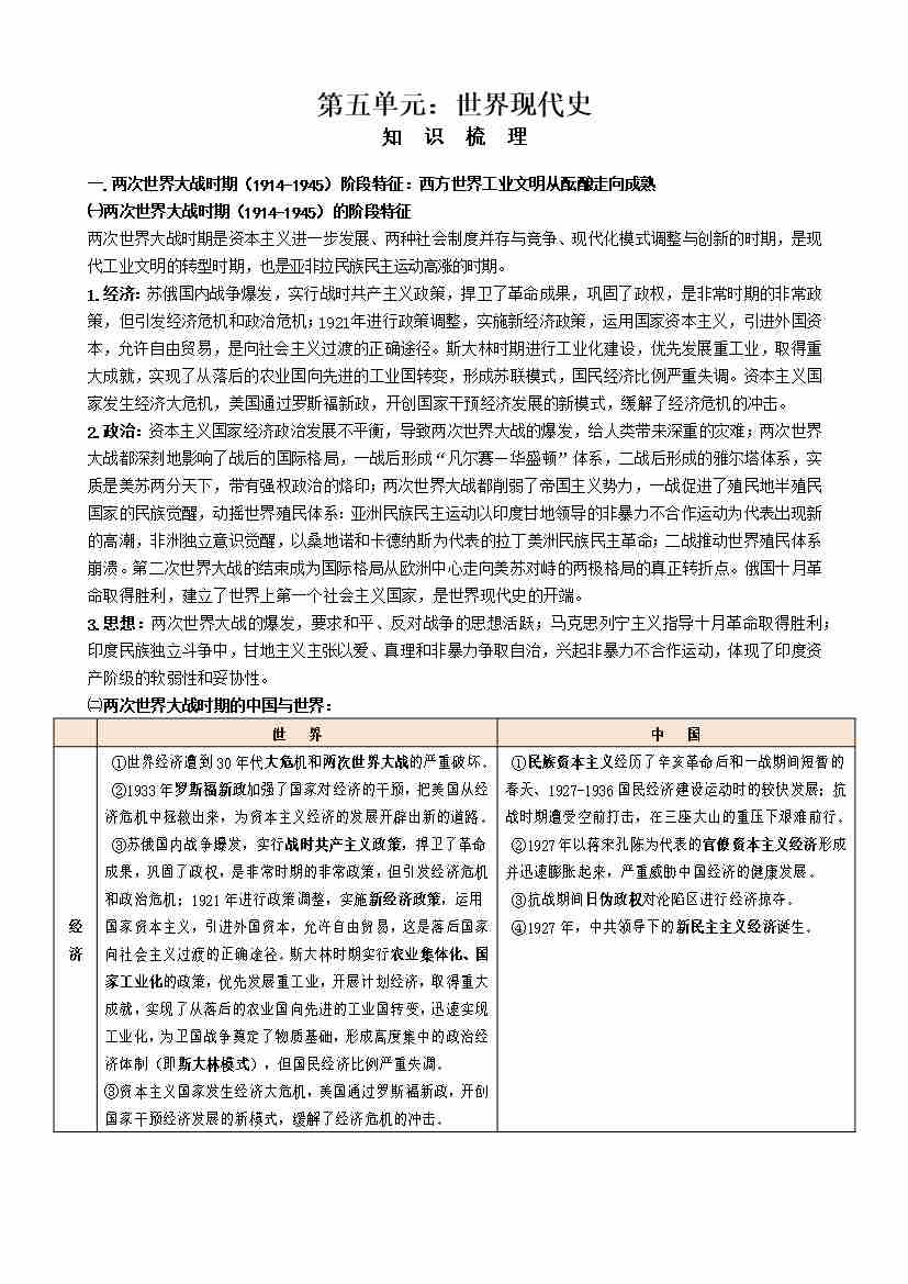 首页 > 全部 > 未知 第五单元:世界现代史部分复习学案(选必融合)—2026届高三统编版2019必修中外历史纲要下册一轮复习(教师版)