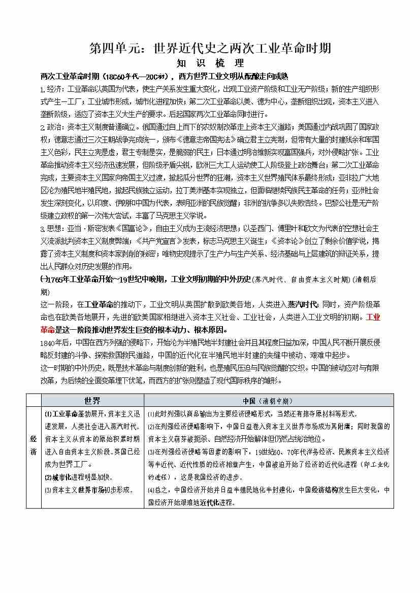 首页 > 全部 > 未知 第四单元:世界近代史部分之两次工业革命时期复习学案(选必融合)—2026届高三统编版2019必修中外历史纲要下册一轮复习(教师版)