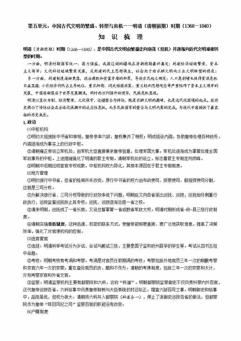 首页 > 全部 > 未知 第五单元:中国古代文明的繁盛、转型与危机—明清时期(学生版)