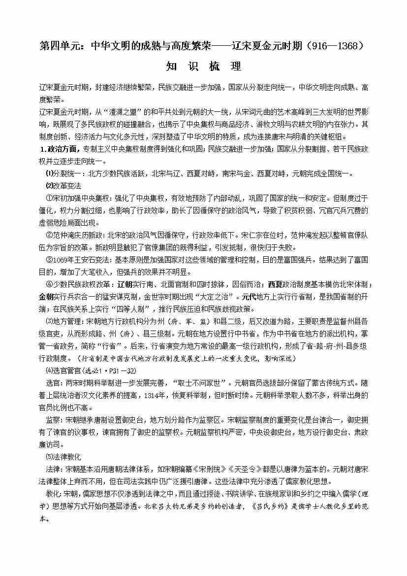 首页 > 全部 > 未知 第四单元:中华文明的成熟与高度繁荣—辽宋夏金元时期(教师版)