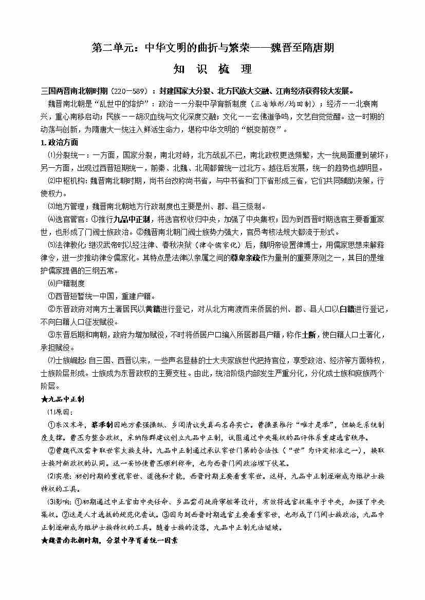 首页 > 全部 > 未知 第三单元:中华文明的曲折与繁荣—魏晋至隋唐期(教师版)