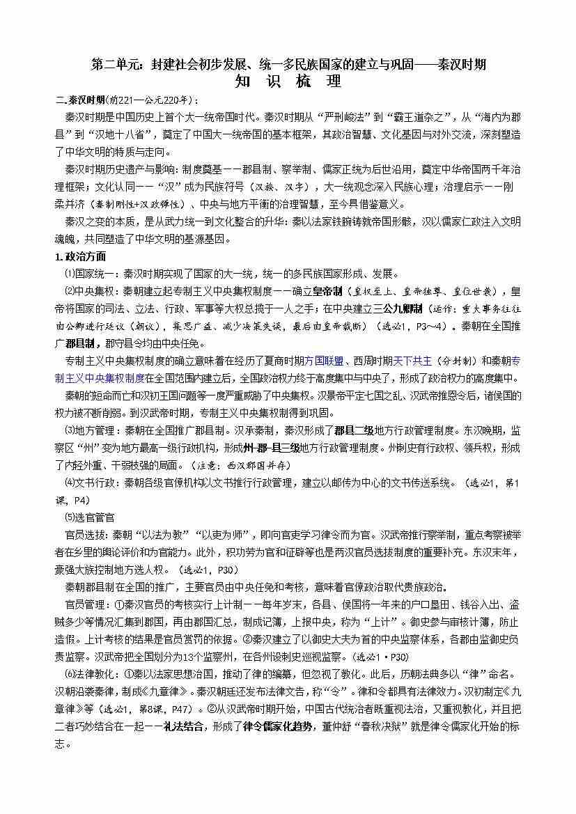 首页 > 全部 > 未知 第二单元:封建社会初步发展、统一多民族国家的建立与巩固—秦汉时期(教师版)