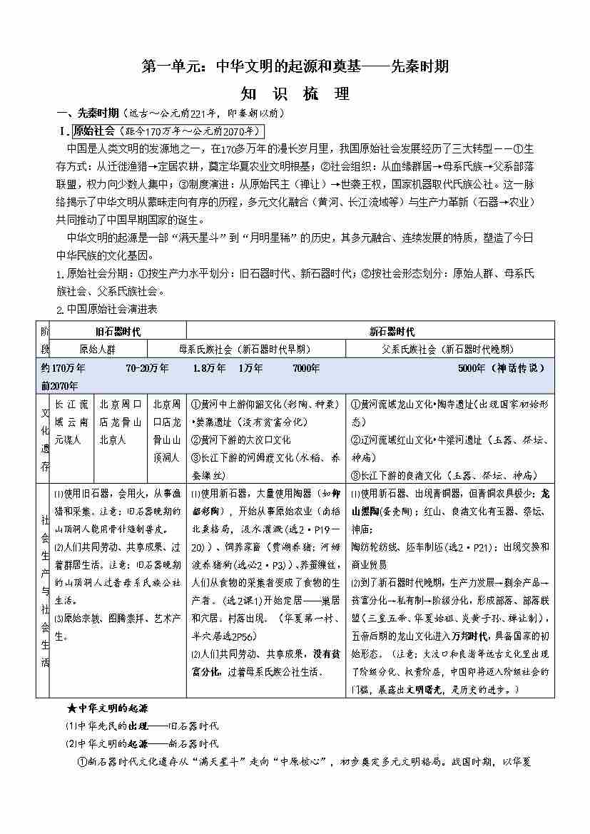 第一单元:中华文明的起源和奠基—先秦时期(教师版)
