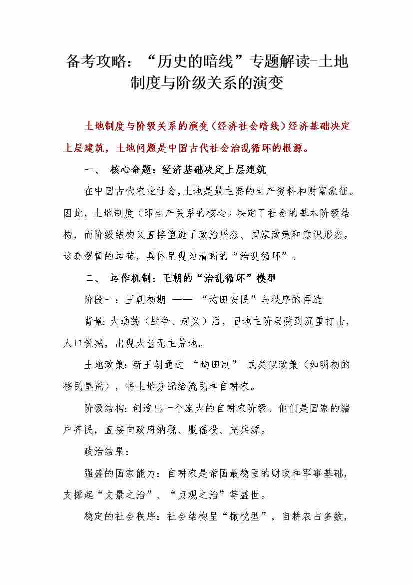 “历史的暗线”专题解读——土地制度与阶级关系的演变 讲义--