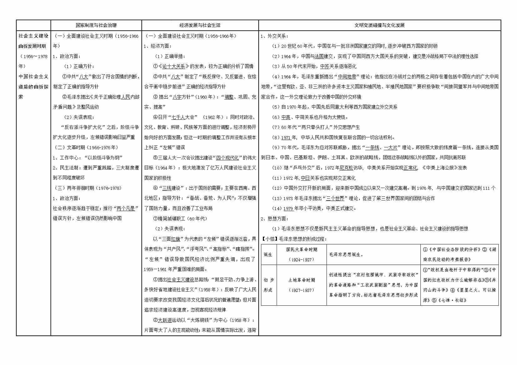 清单11 中国通史表格—社会主义建设曲折发展时期(教师版)