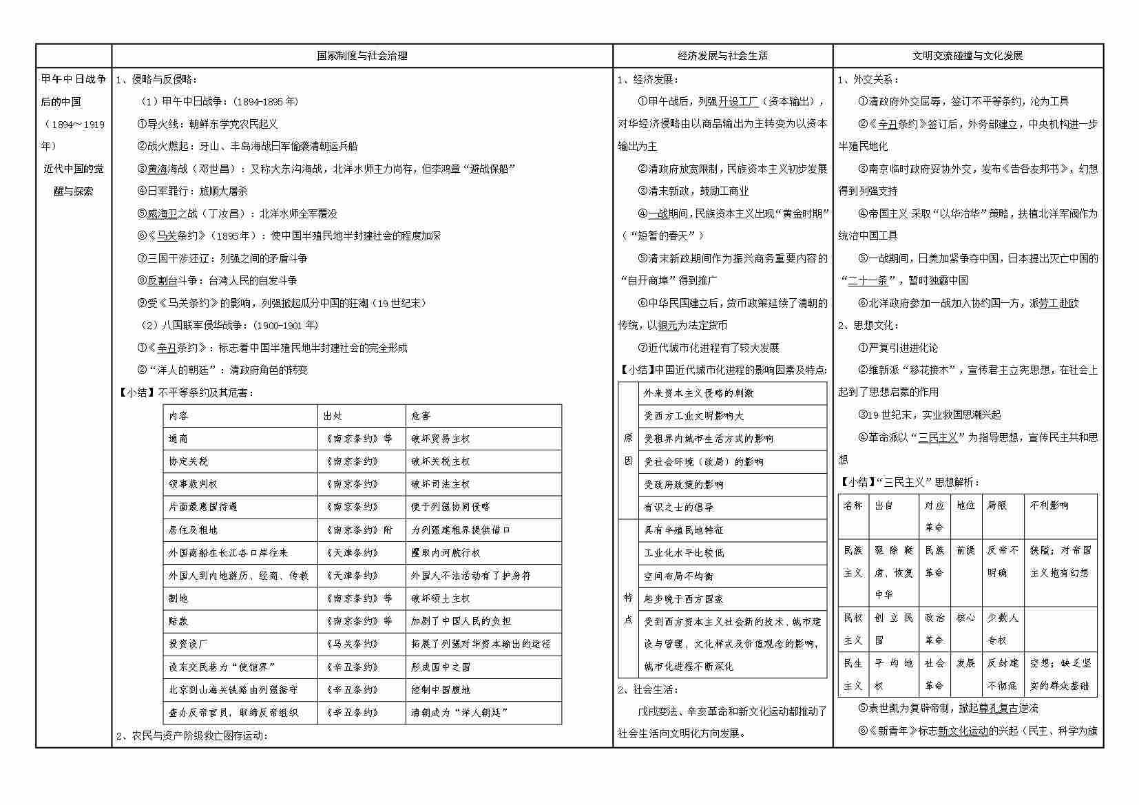 清单08 中国通史表格—甲午中日战争后的中国(教师版)