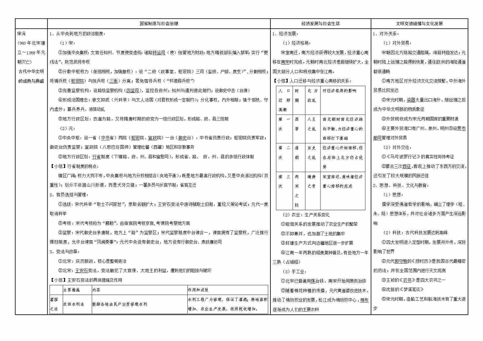 清单05 中国通史表格—宋元(教师版)