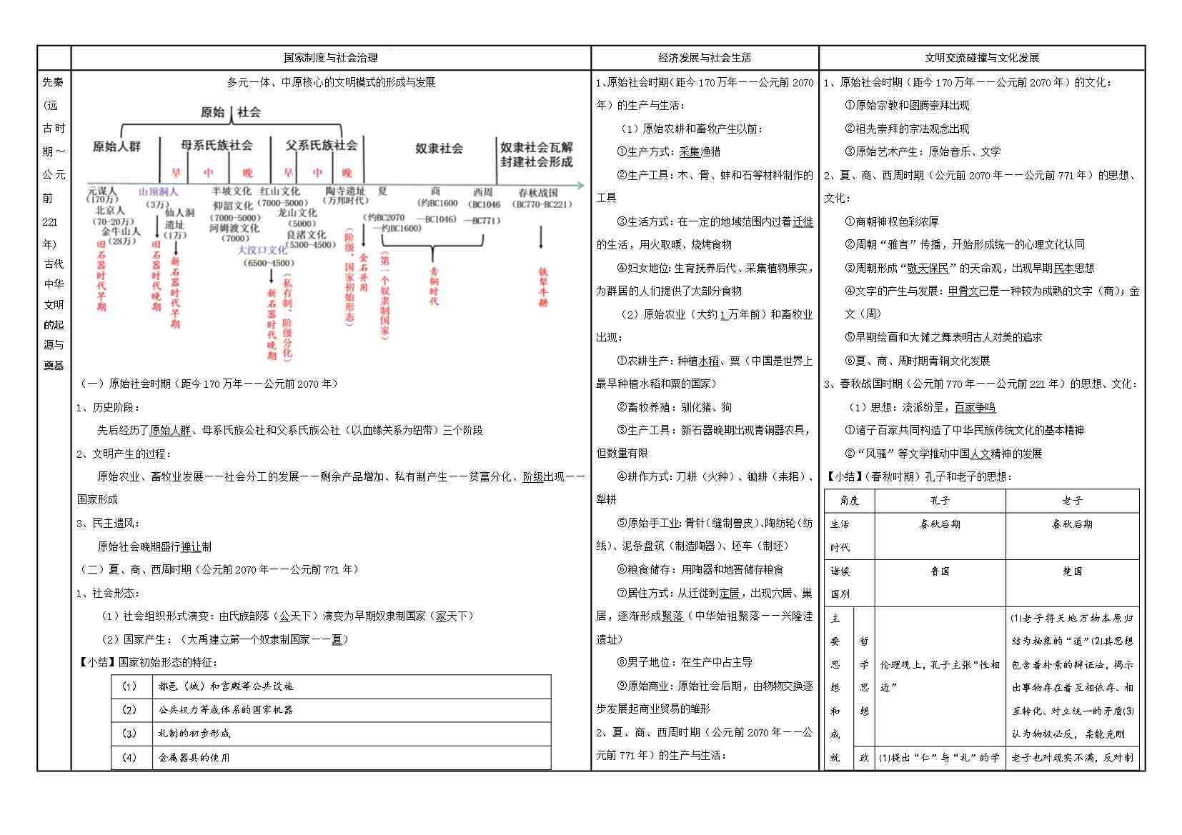 清单01 中国通史表格—先秦(教师版)