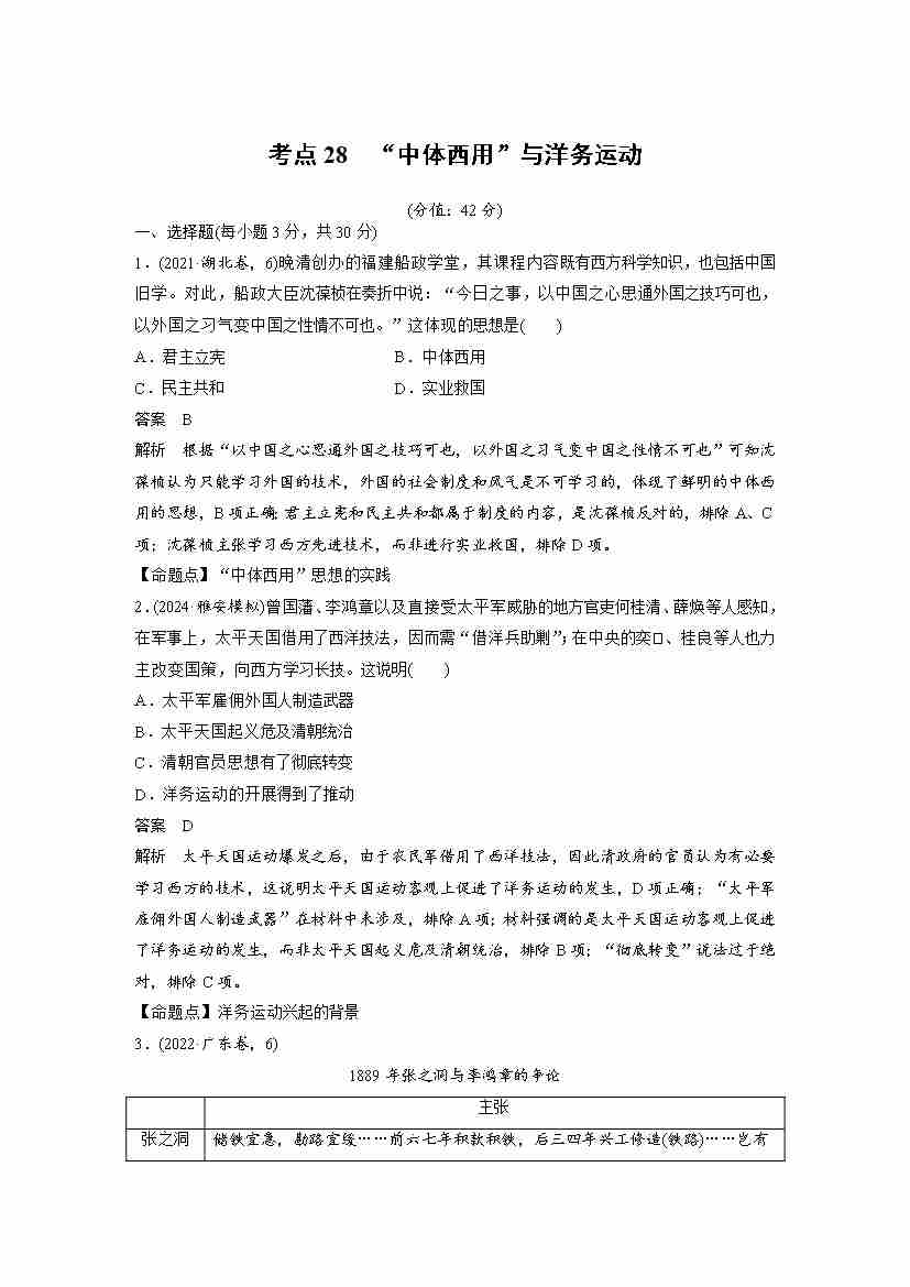 首页 > 全部 > 未知 考点28 “中体西用”与洋务运动(教师版)
