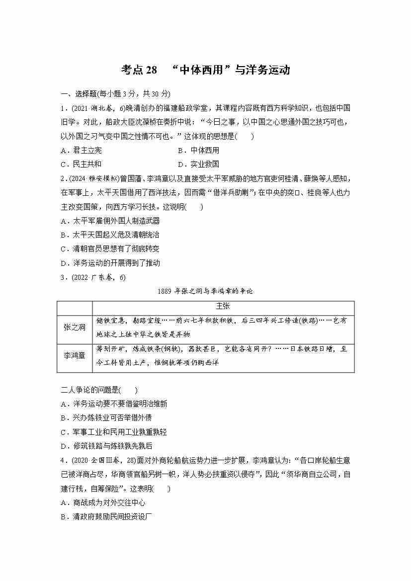 首页 > 全部 > 未知 考点28 “中体西用”与洋务运动(学生版)