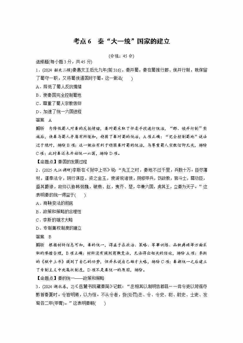 首页 > 全部 > 未知 考点6 秦“大一统”国家的建立(教师版)