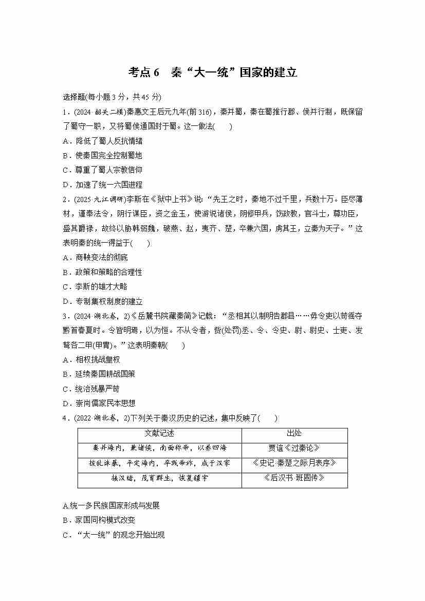 首页 > 全部 > 未知 考点6 秦“大一统”国家的建立(学生版)