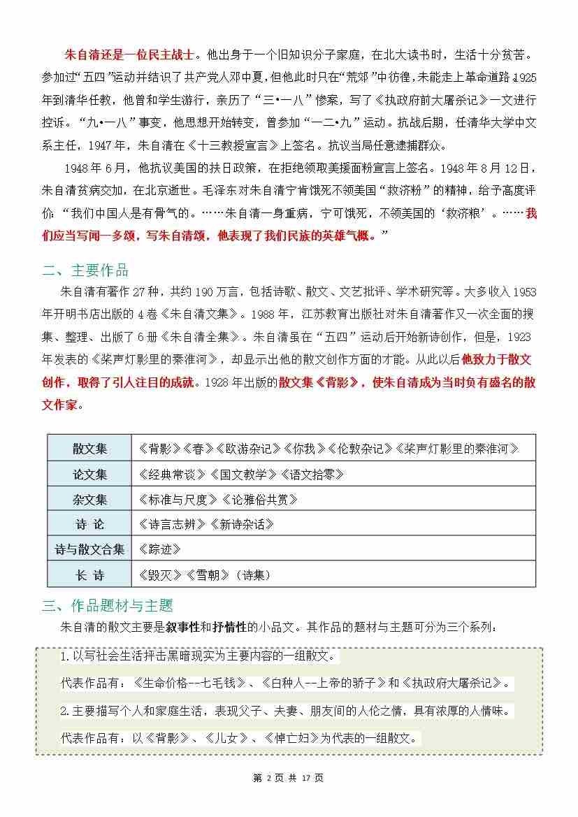 首页 > 全部 > 精品讲义 > 第01讲 朱自清散文 (解析版)