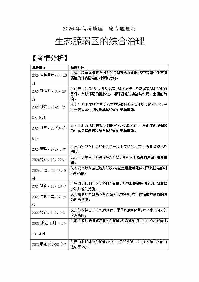 35.高考地理一轮专题复习——生态脆弱区的综合治理
