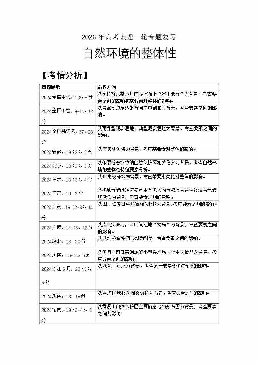 27.高考地理一轮专题复习——自然环境的整体性