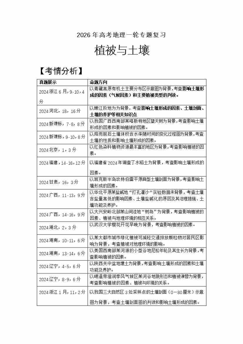 25.高考地理一轮专题复习——植被与土壤