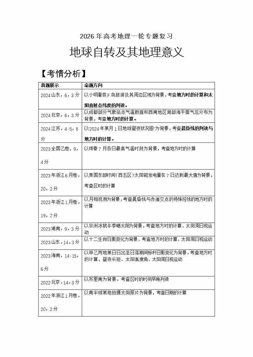 5.高考地理一轮专题复习——地球自转及其地理意义