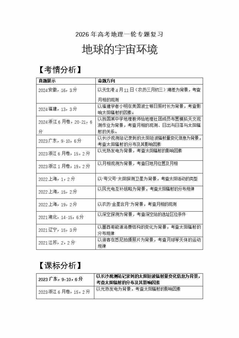3.高考地理一轮专题复习——地球的宇宙环境