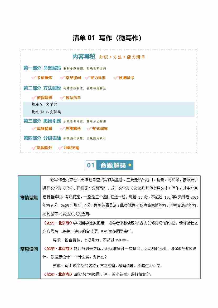 首页 > 全部 > 未知 清单01 写作(微写作)(知识·方法·能力清单)(学生版)