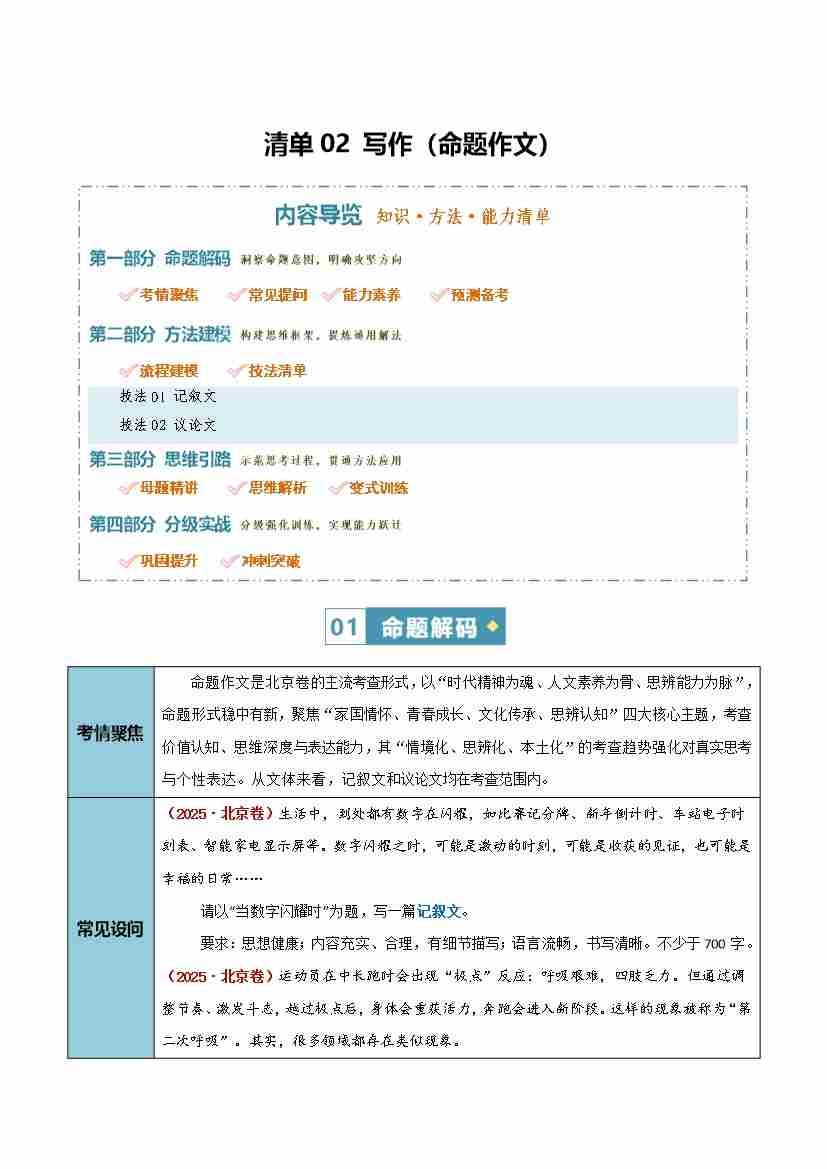 首页 > 全部 > 未知 清单02 写作(命题作文)(知识·方法·能力清单)(学生版)
