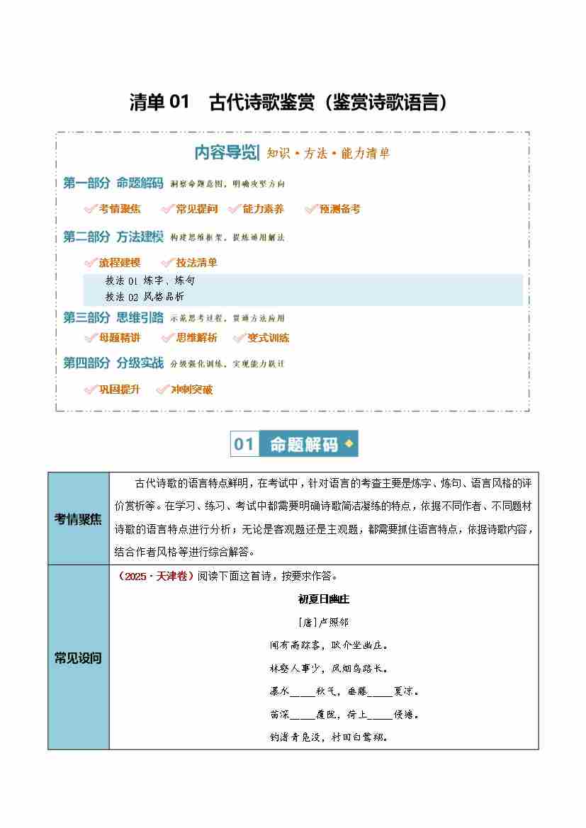 清单02 古代诗歌鉴赏(鉴赏诗歌语言)(知识·方法·能力清单)(全国通用)(教师版)