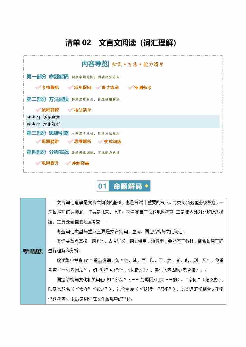 首页 > 全部 > 未知 清单02 文言文阅读(词汇理解)(知识·方法·能力清单)(全国通用)(学生版)
