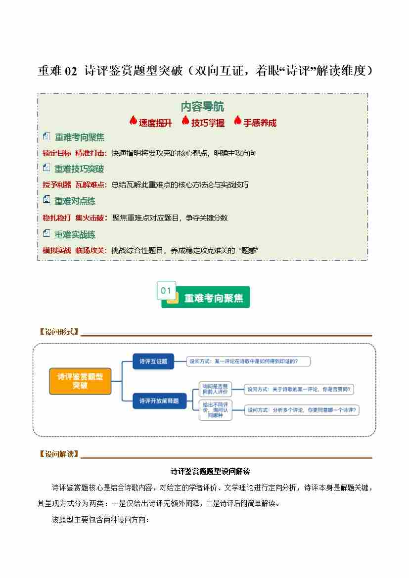 首页 > 全部 > 未知 重难02 诗评鉴赏题型突破(双向互证,着眼“诗评”解读维度)(重难专练)(全国通用)(教师版)