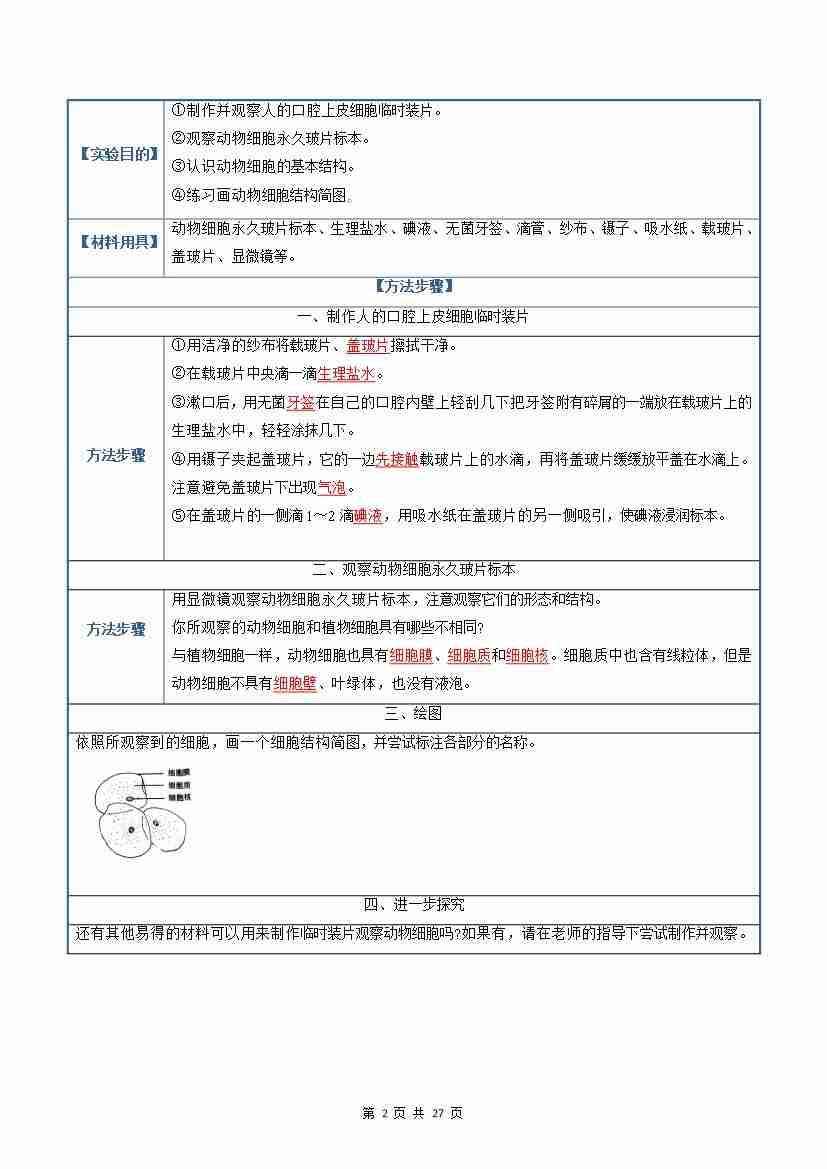 首页 > 全部 > 实验讲义 > 实验探究03 观察人的口腔上皮细胞和动物细胞(解析版)