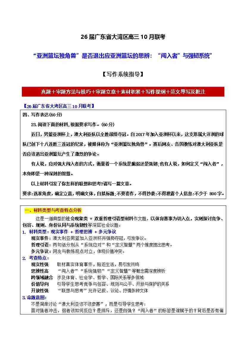 广东省大湾区高三10月联考“亚洲篮坛独角兽”是否退出应亚洲篮坛的思辨:“闯入者”与强韧系统”