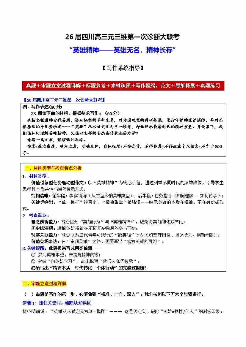 四川高三元三维第一次诊断大联考“英雄精神——英雄无名,精神长存”