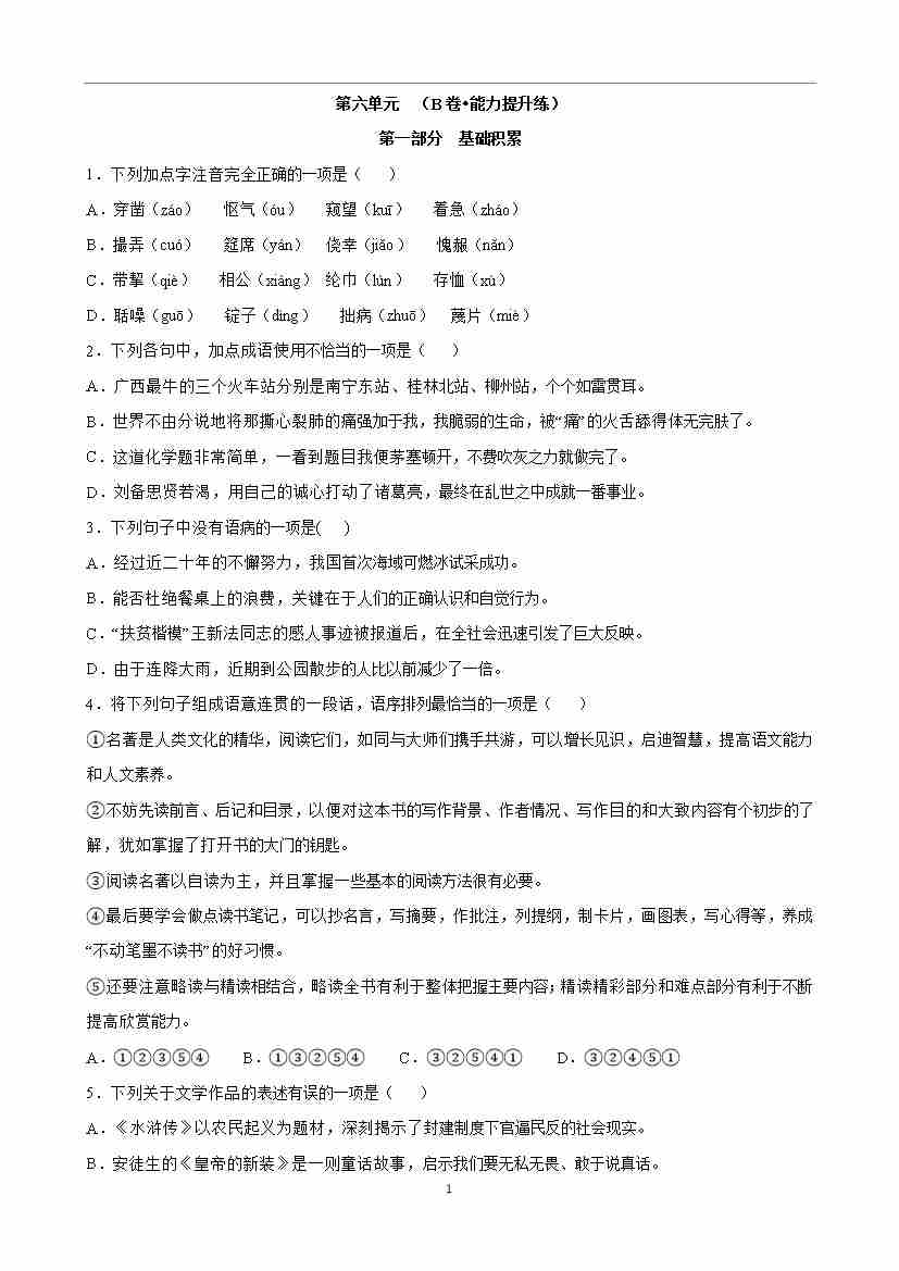 第六单元检测(B卷•能力提升练)