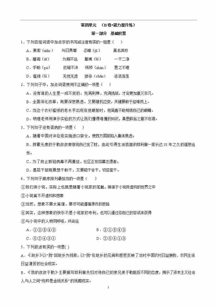 首页 > 全部 > 单元提升卷 > 第四单元检测(B卷•能力提升练)
