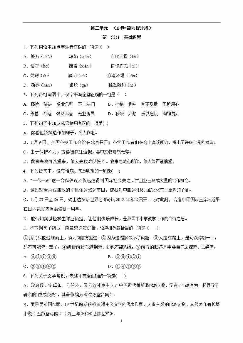 第二单元检测(B卷•能力提升练)
