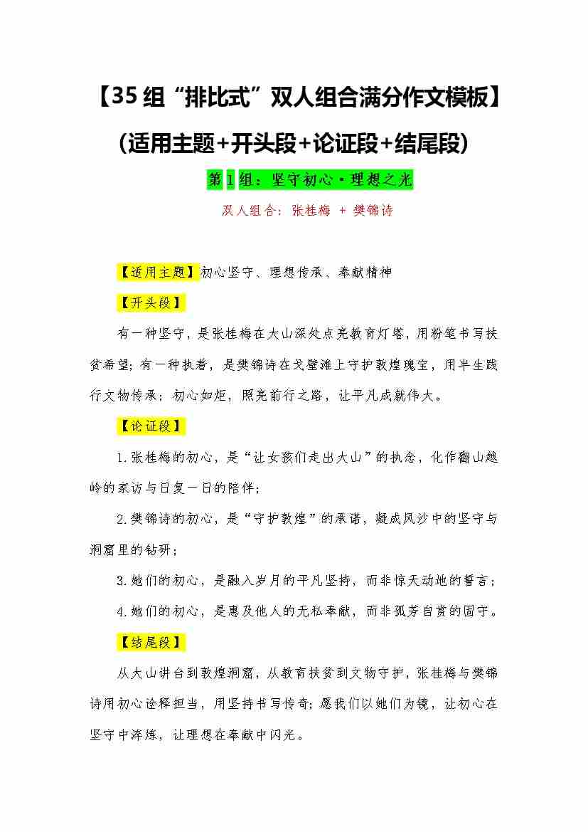 16(35组“排比式”双人组合满分作文模板)(适用主题、开头段、论证段、结尾段)